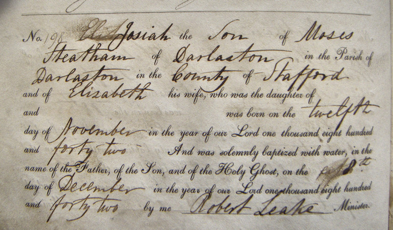 Moving on with the story, Moses Steatham, born 1813, married Elizabeth Griffiths born 1815, on Sunday the 18th of January 1835, at St Matthews, Walsall.