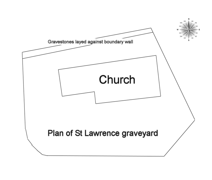 Steatham Research - Cemeteries St Lawrence, Darlaston. The original church dates from the 12th c, the present church was built in 1872. In 1953 the gravestones were removed and placed on the north side of the perimeter wall (see plan below). I have checked them all, and there are no Steathams present. I have also obtained a fiche of the Memorial Inscriptions from The Birmingham & Midland Society for Genealogy & Heraldry, and there are again no Steathams present. A list of Rectors for the 'Steatham' period are as follows:- 1799 Richard Postlewaite. 1800 John Waltham. Died 11th July 1814. 1814 Samuel Lowe. Died 23rd November 1834. 1835 George Fisk. 1837 Robert Wood Kyle. 1840 Joseph Hugill. 1843 George F White. 1868 John Richardson. 1880 Benjamin Wright. 1890 Thomas Hamer. 1912 John W Dixon. 1925 James W Augur. |